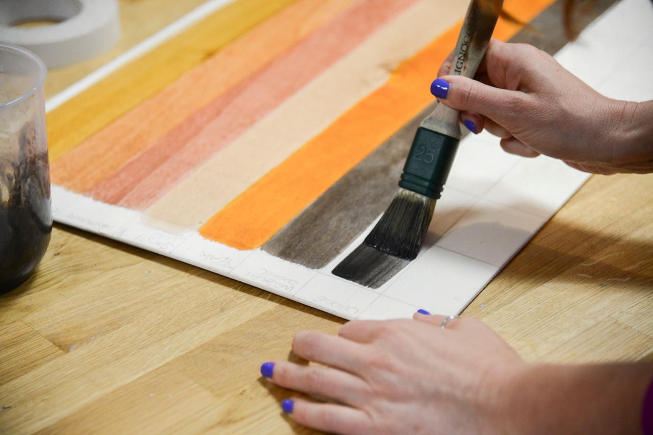 • Holzbeizen & Beiztechniken: Verschiedene Produkte testen und Farbtöne ausprobieren, inklusive eigener Farb-Legende auf einem Übungsbrett