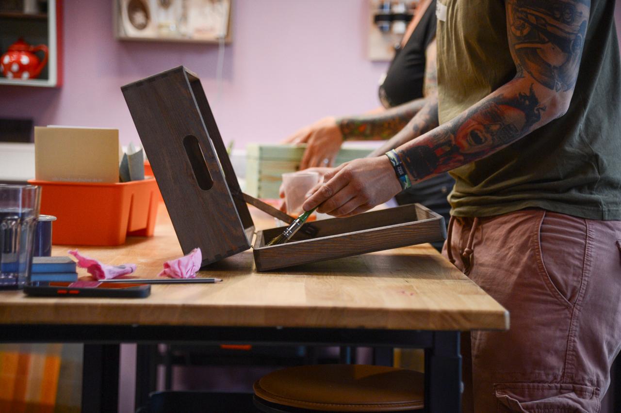Nach den Übungen gestaltest du eine praktische Holzkiste im eigenen Stil - du wählst einen Beizton aus und kombinierst ihn mit einem passenden Finish deiner Wahl. Am Ende nimmst du sowohl das Übungsbrett als auch dein gestaltetes Werkstück mit nach Hause – zwei sichtbare Ergebnisse deiner neuen Fähigkeiten.